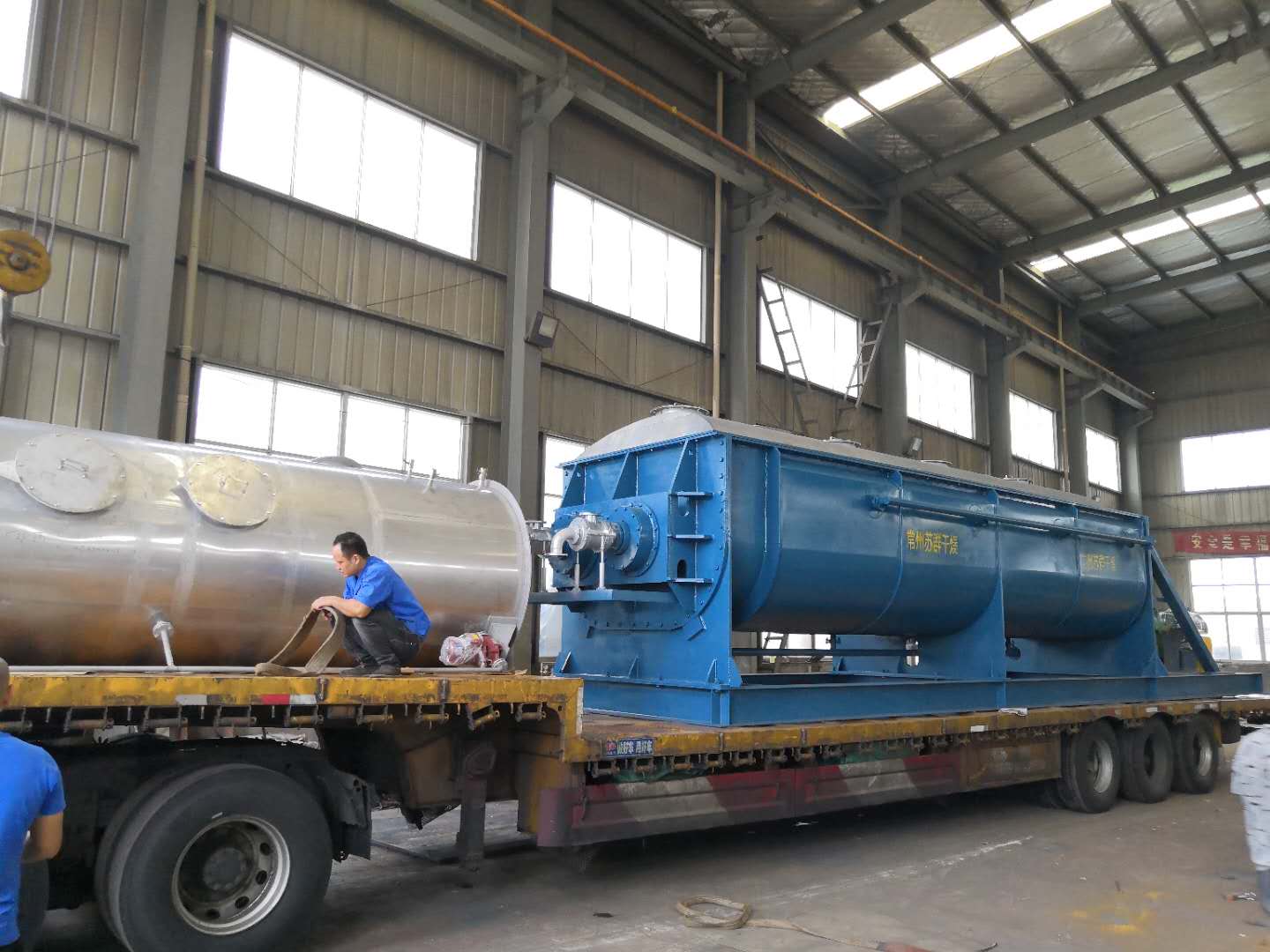 近日蘇州吳江區一臺120平方大型污泥槳葉干燥機已完工,該設備一小時可蒸發1.2噸水,可處理污泥約2噸每小時,該大型污泥槳葉干燥機鐵板全部采用30-40毫米厚板制作完成,確保設備的質量和穩定性,設備整體重量達30噸以上。并且設備傳動部分采用過橋式連接,可有效減輕減速機和電機的負荷,確保設備的穩定運行和設備的使用年限